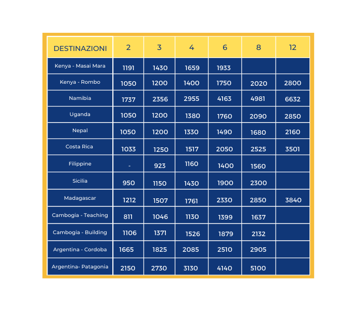 La quota di partecipazione varia in base al progetto e al numero di settimane di permanenza. Cerca di impiegare più tempo possibile perché la quota per settimana diminuirà se prendi in considerazione una permanenza più lunga. Ti viene richiesta la quota perché ricevere un volontario comporta dei costi aggiuntivi per il partner ospitante, fra cui spese di vitto e alloggio, finanziamento di attività in loco, trasporti e trasferte. E grazie alla tua quota, il partner che ti ospiterà avrà l’opportunità di attivare nuovi progetti e raggiungere i propri obbiettivi, anche grazie al tuo aiuto.